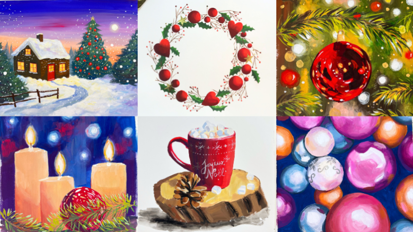 Six festive step-by-step tutorials to help you slow down, play with color, and create joyful gouache art this season.